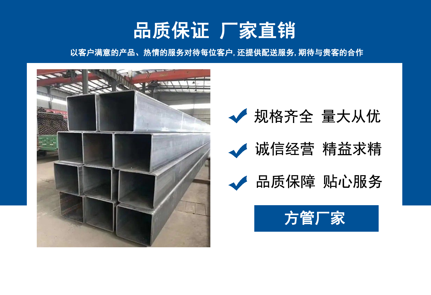 山東方管廠主要生產Q355B方管,Q355C方管,Q355D方管,Q355E方管,低合金方管等,曾多次為客戶解決了各種無縫管疑難問題,經不斷的創新與努力,得到了客戶良好的信譽和稱贊?! 」颈匈|量、服務是我們尋求發展的唯一途徑,為客戶提供極具市場競爭力的高品質產品,愿與客戶一起進步、共享成功!  我公司秉承“誠信經營,服務周到”的經營原則,全力以赴,給客戶周到滿意的服務?!罢\信、專業、認真、服務”是我們的宗旨。幾年來我們用專業的技術和周到的服務贏得了廣大客戶和供應商的信賴,與各大企業有著廣泛的合作和聯系,受到了業內好評。我們會以優良的產品、優惠的價格、優先的貨期、優良的服務,珍惜客戶給予我們的每一個機會。...